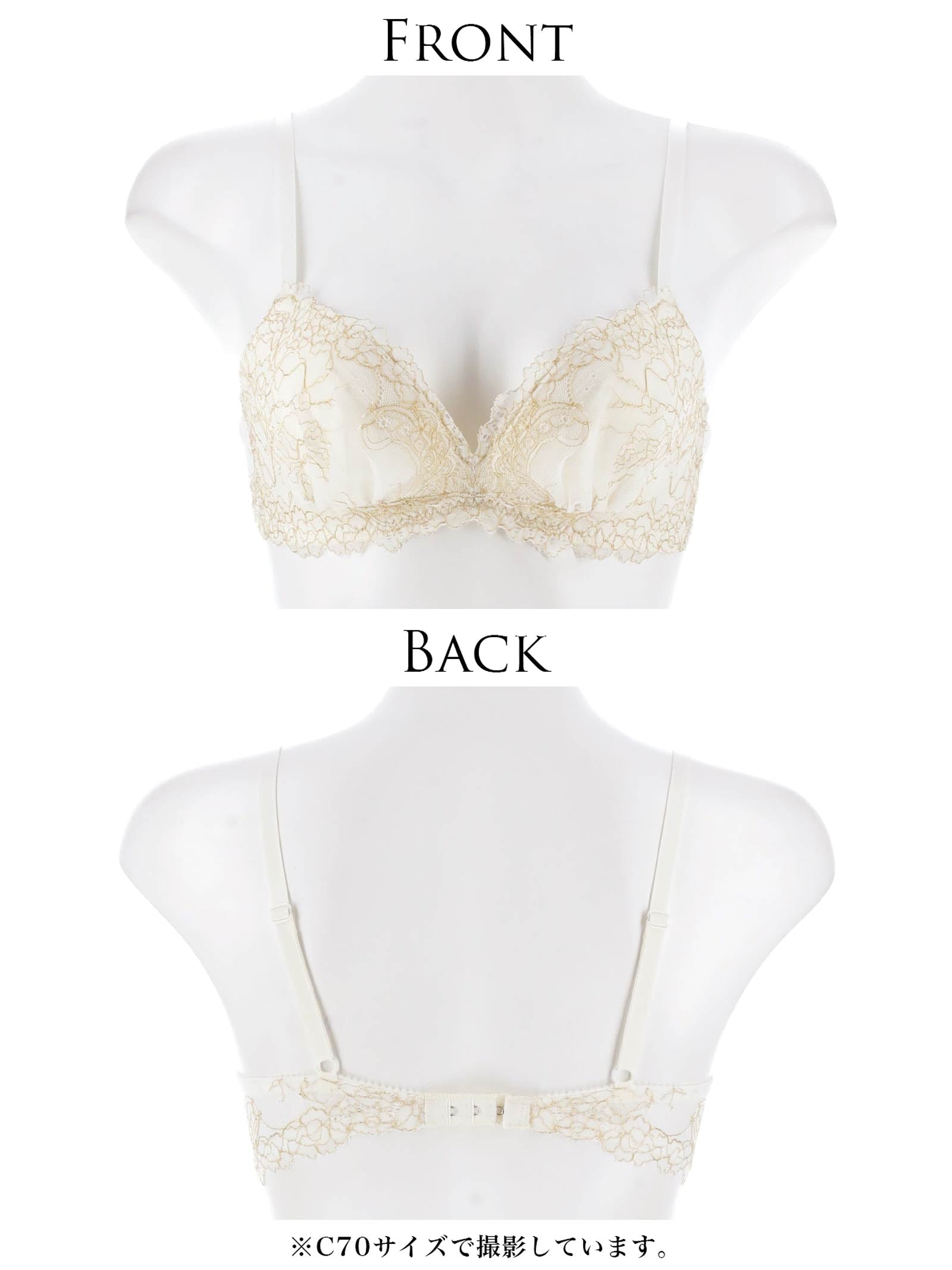 ブラジャー:3/4カップ/ワイヤー:無/ホック:バック1段3列